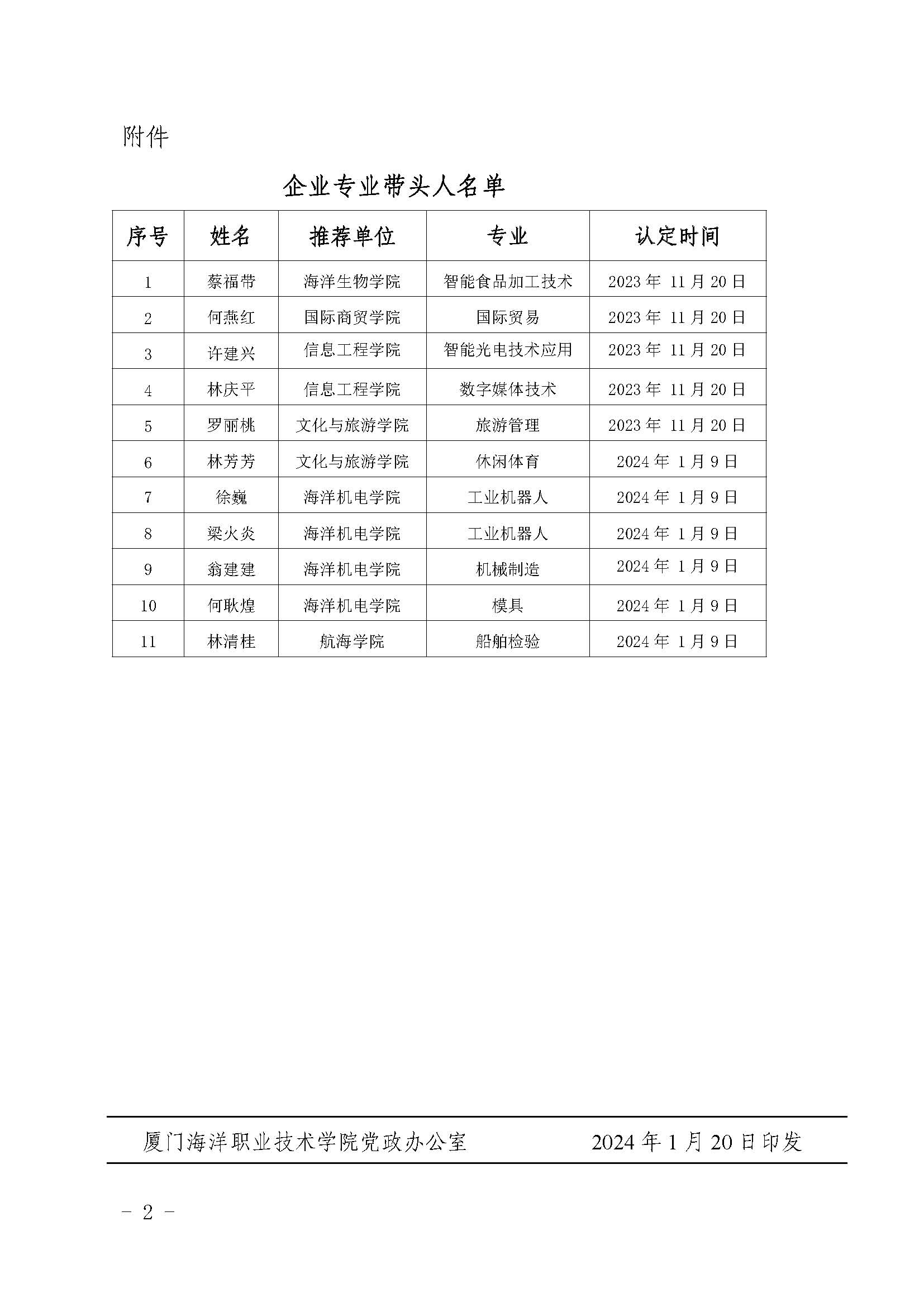 1月19日,廈門海洋職業(yè)技術(shù)學院公布企業(yè)專業(yè)帶頭人認定人員名單的通知,根據(jù)《廈門海洋職業(yè)技術(shù)學院專業(yè)帶頭人和骨干教師選拔與管理暫行辦法(試行)》(廈海職院〔2018〕28號)文件精神,認定鳳凰創(chuàng)壹董事長林慶平等11人為企業(yè)專業(yè)帶頭人,任期三年。
