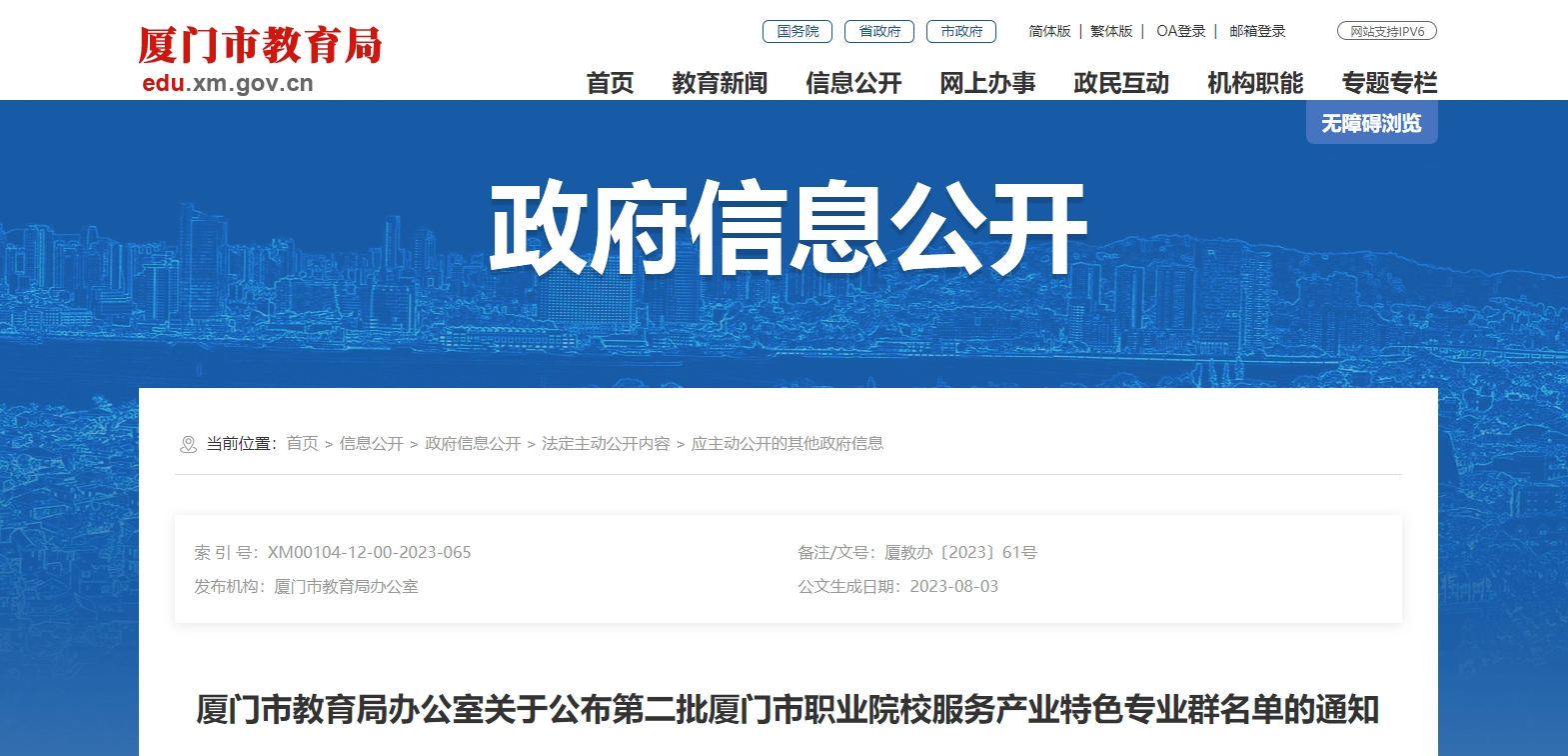 近日,廈門市教育局在其官網上發(fā)布《廈門市教育局辦公室關于公布廈門市應用型本科高校高水平專業(yè)立項建設名單的通知》,根據《廈門市教育局關于實施應用型本科高校高水平專業(yè)建設計劃的通知》(廈教發(fā)〔2023〕56號)精神,經組織遴選、專家評審、公示無異議,認定集美大學電子信息工程等20個專業(yè)為廈門市應用型本科高校高水平專業(yè)立項建設項目。