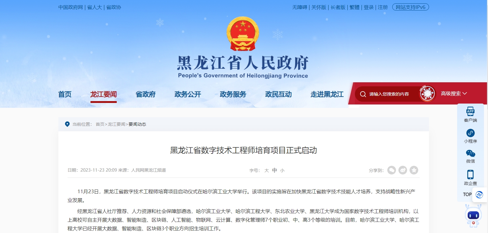 黑龍江省每年將培養(yǎng)8萬(wàn)名數(shù)字技術(shù)技能人員