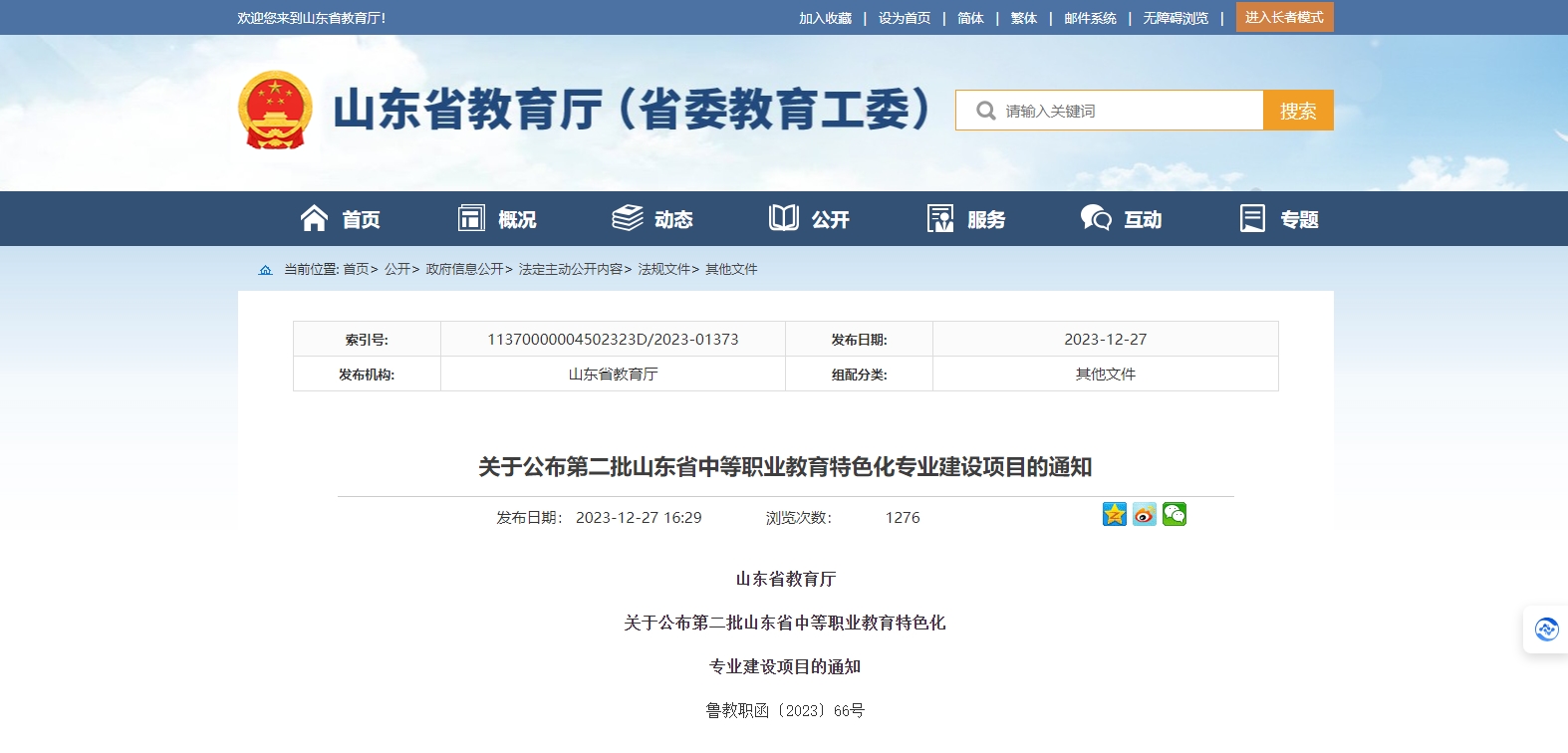近日,山東省教育廳發(fā)布《關于公布第二批山東省中等職業(yè)教育特色化專業(yè)建設項目的通知》,根據(jù)《山東省教育廳關于開展第二批山東省中等職業(yè)教育專業(yè)特色化建設項目申報工作的通知》,經學校申報、各市推薦、專家評審,山東省確定36個專業(yè)為第二批山東省中等職業(yè)教育特色化專業(yè)建設項目,目前名單已公布。