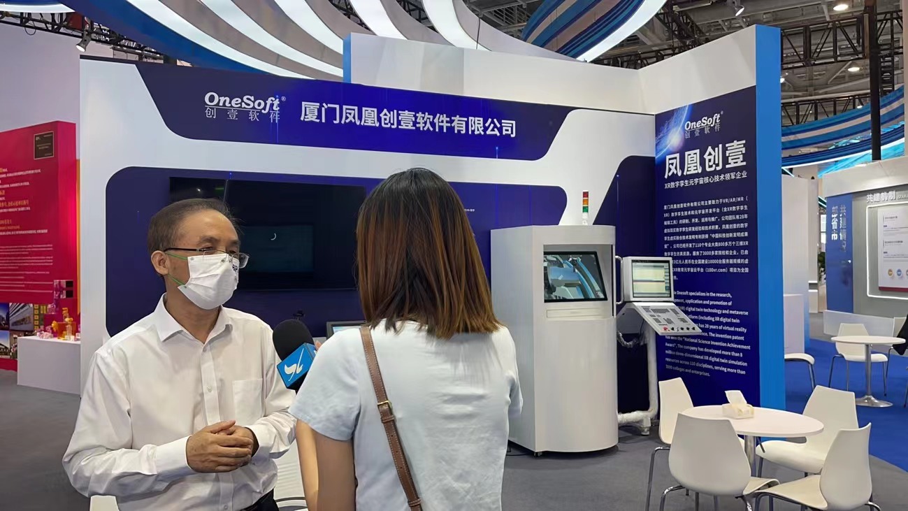 廈門鳳凰創(chuàng)壹總經理林慶平博士:我們本次參展的是元宇宙、虛擬現(xiàn)實、數字孿生、虛實融合的產品,希望能夠把完全國產自主產權,擁有所有源代碼的產品分享給所有金磚國家。