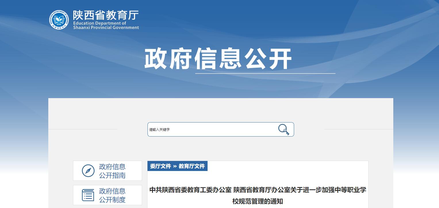 陜西省教育廳發(fā)布《關(guān)于進一步加強中等職業(yè)學(xué)校規(guī)范管理的通知》