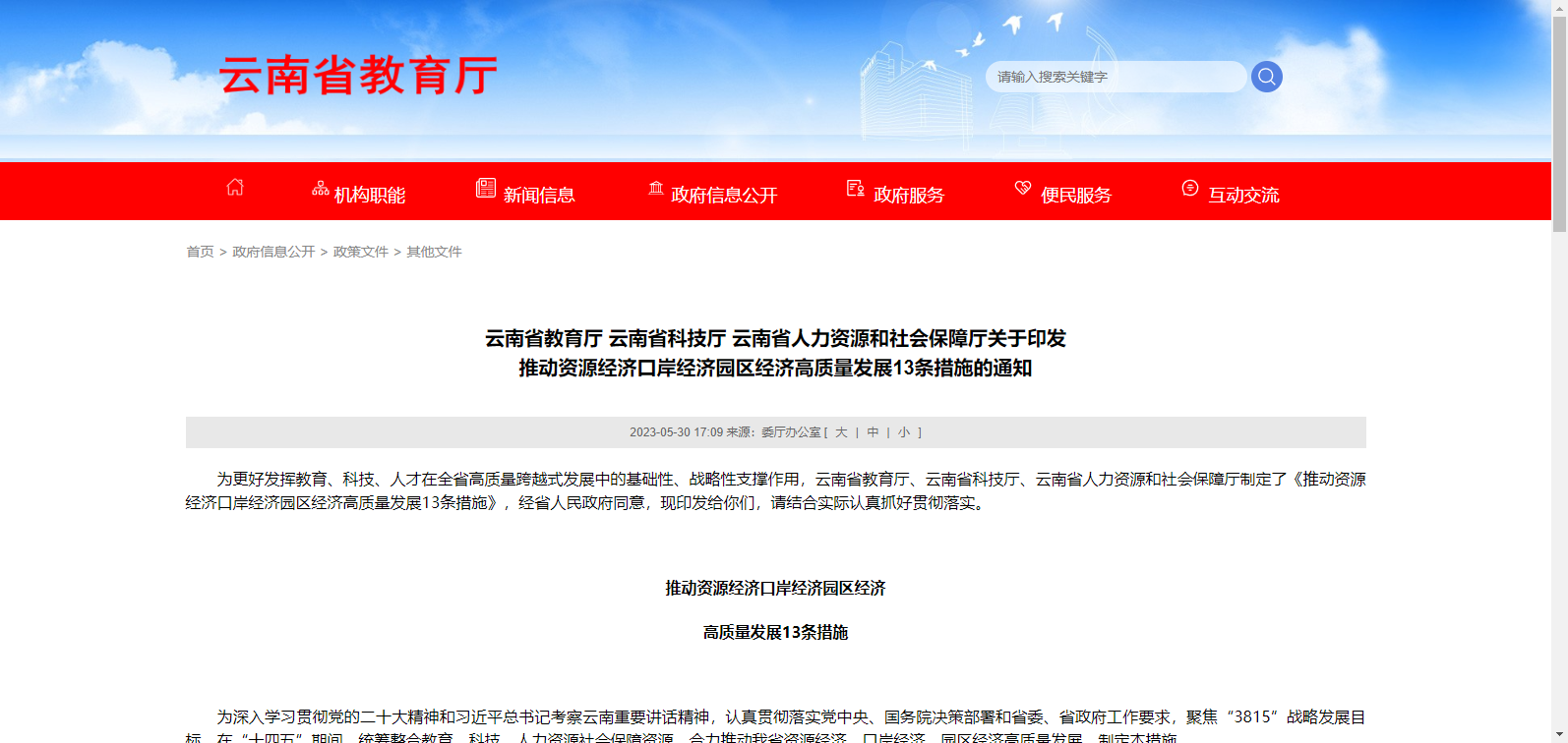 云南省教育廳等三部門近日聯(lián)合印發(fā)通知,推動(dòng)資源經(jīng)濟(jì)口岸經(jīng)濟(jì)園區(qū)經(jīng)濟(jì)高質(zhì)量發(fā)展
