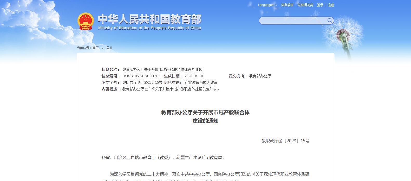 教育部發(fā)布關(guān)于開(kāi)展市域產(chǎn)教聯(lián)合體建設(shè)的通知