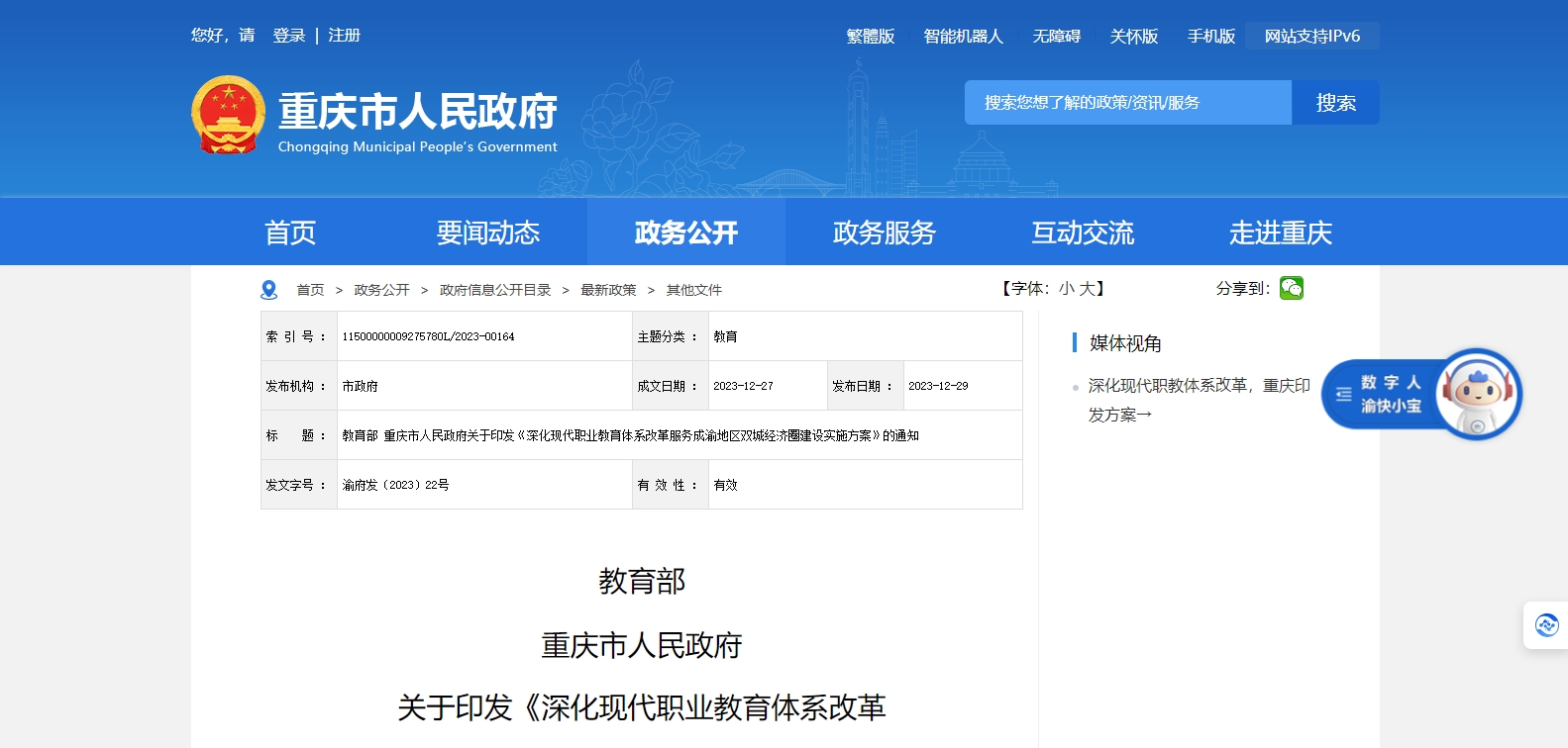 教育部、重慶市人民政府印發(fā)《深化現(xiàn)代職業(yè)教育體系改革 服務(wù)成渝地區(qū)雙城經(jīng)濟(jì)圈建設(shè)實(shí)施方案》的通知