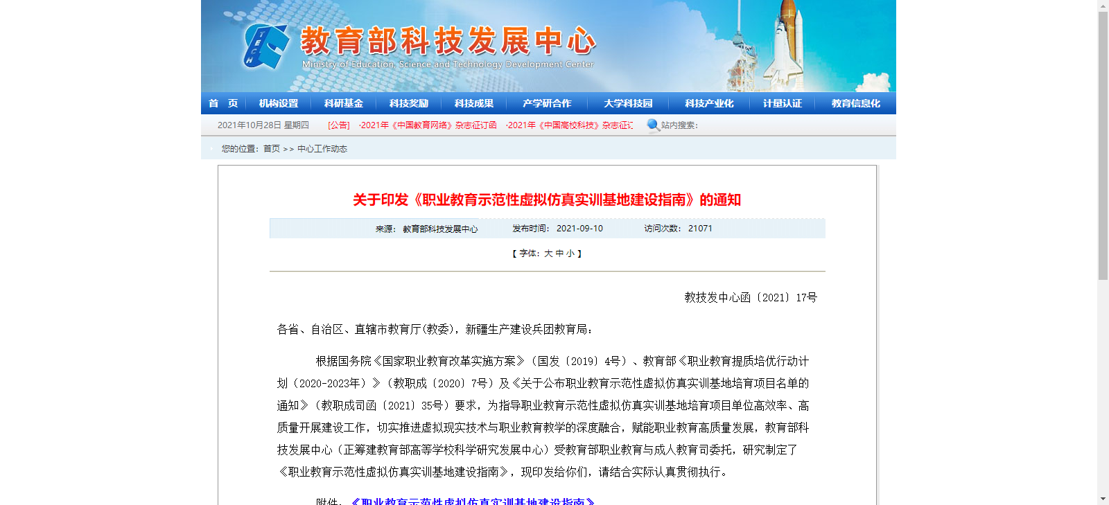 教育部科技發(fā)展中心發(fā)布《職業(yè)教育示范性虛擬仿真實訓(xùn)基地建設(shè)指南》